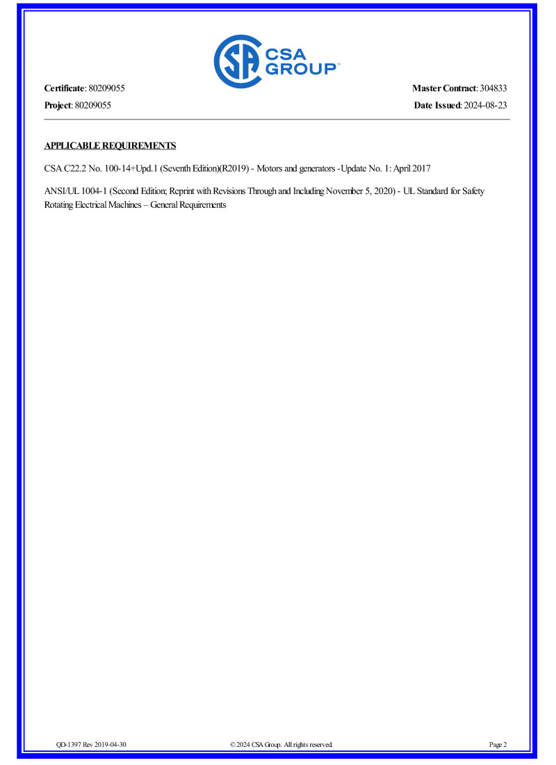 電機CSA認證證書